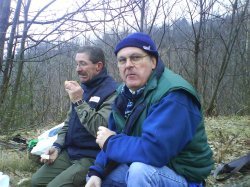 Jean-Pierre L (et pas S qui lui ne fait que 2e et rend donc Jipé qui porte vraiment bien son nom – A noter, sur notre photo, la tension dans les regards des 2 JP quelques jours avant l’épreuve et face à un saucisson rebelle) remporte, sans surprise, sa 3e victoire en Combiné en 3 ans et égalise ainsi le record de victoire en toutes catégories avec 6 Victoires après acquises en Combiné en 2007 et 2008, et en tir Nature en 2001, 2002 et 2008.
